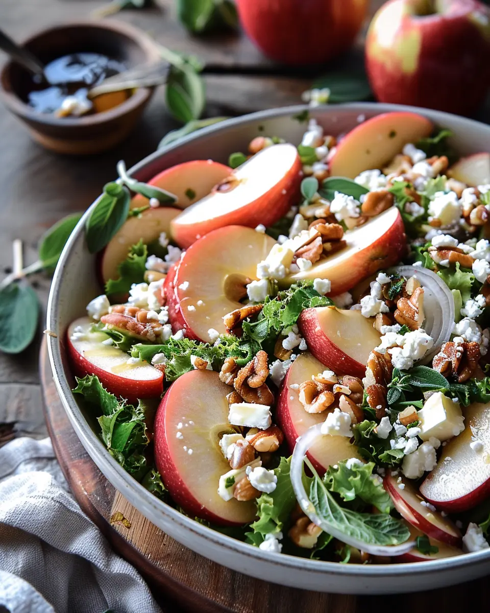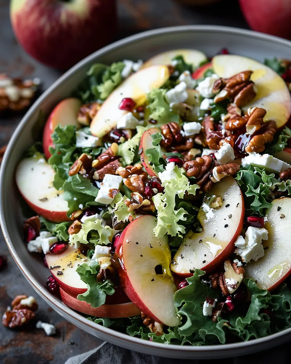 A refreshing salad featuring crisp Honeycrisp apples, creamy feta cheese, and a mix of seasonal ingredients.