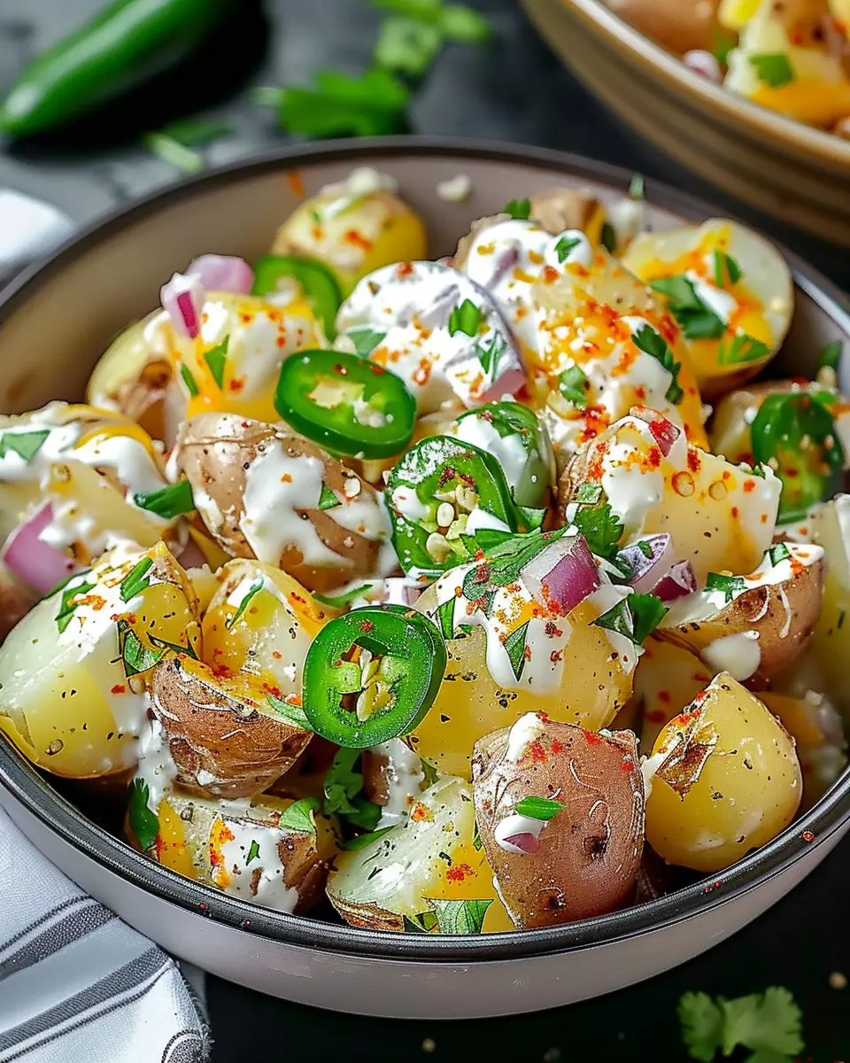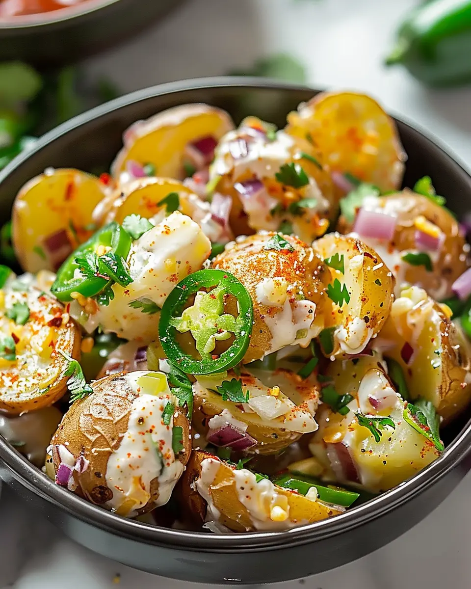 Serve it warm or chilled—either way, your guests will love this creamy, spicy take on a classic potato salad. If you’re hosting a party or a potluck, prepare for compliments that flow as effortlessly as the flavors in this dish. Why not pair it with grilled meats or serve it on the side with that spicy taco night you have planned?