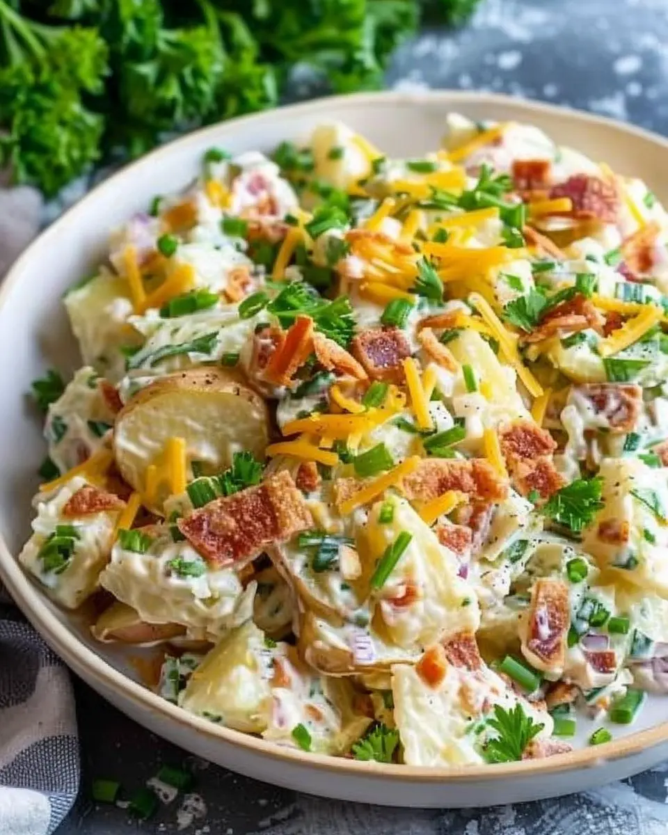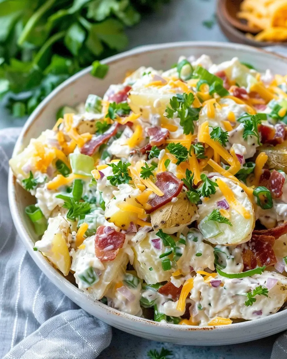 First and foremost, consider the sheer versatility of this dish. You can personalize it to fit your taste buds and dietary needs. Are you aiming for something healthier? Swap out traditional ingredients for Turkey Bacon and Chicken Ham. Craving a bit of crunch? Toss in some chopped bell peppers or a sprinkle of green onions for that fresh crunch. The beauty of a loaded baked potato salad recipe lies in its adaptability—no two salads need to be the same!