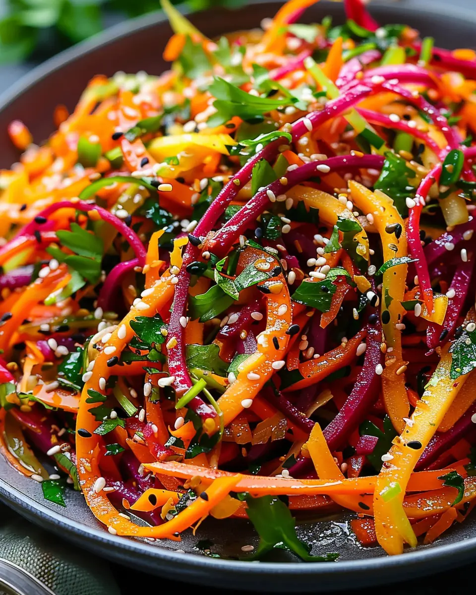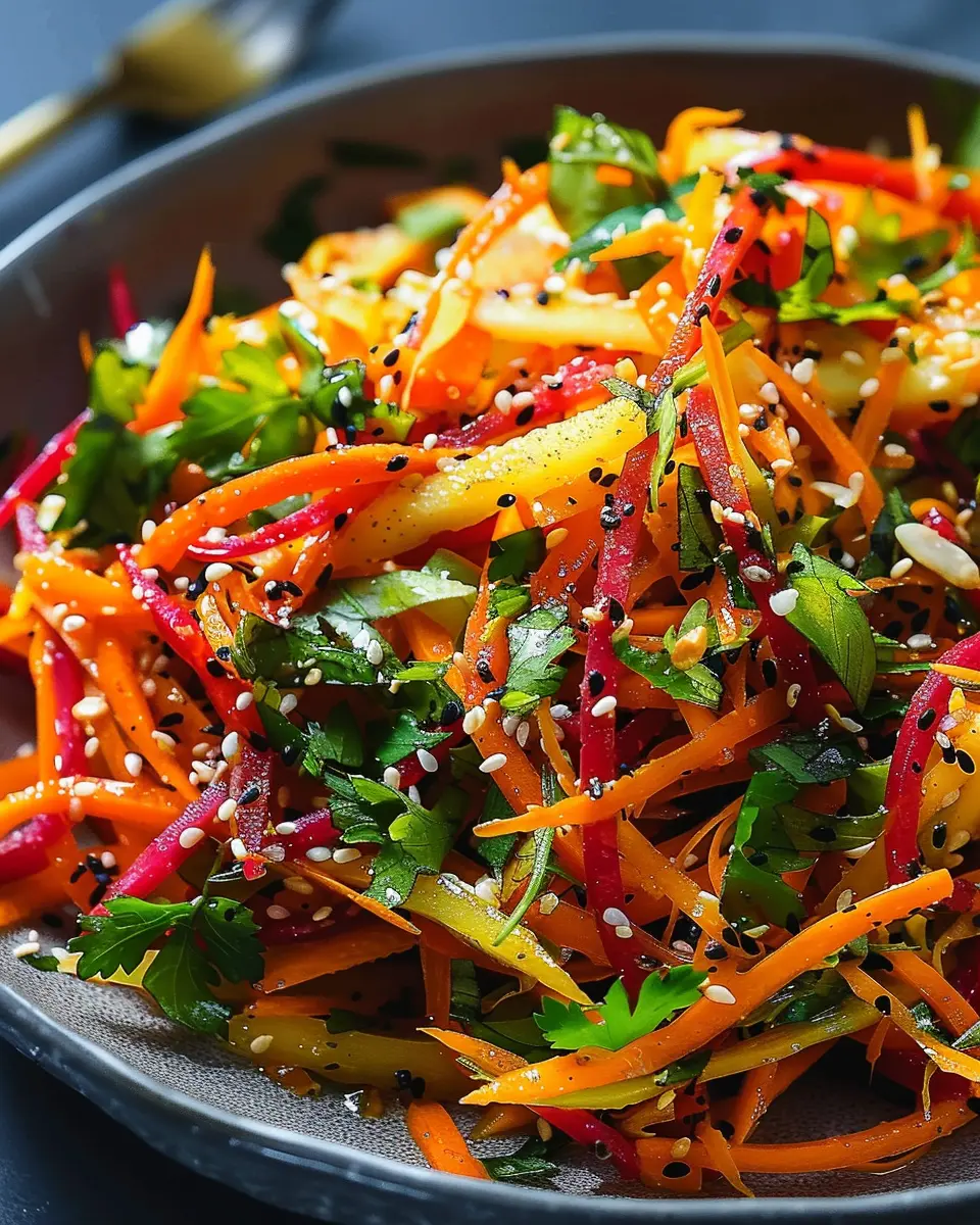 By following these steps, you’ll create a stunning shaved rainbow carrot sesame salad that is as enjoyable to make as it is to eat. Whether you serve it as a side dish or a light main course, this salad is sure to impress your friends and family. Happy cooking!