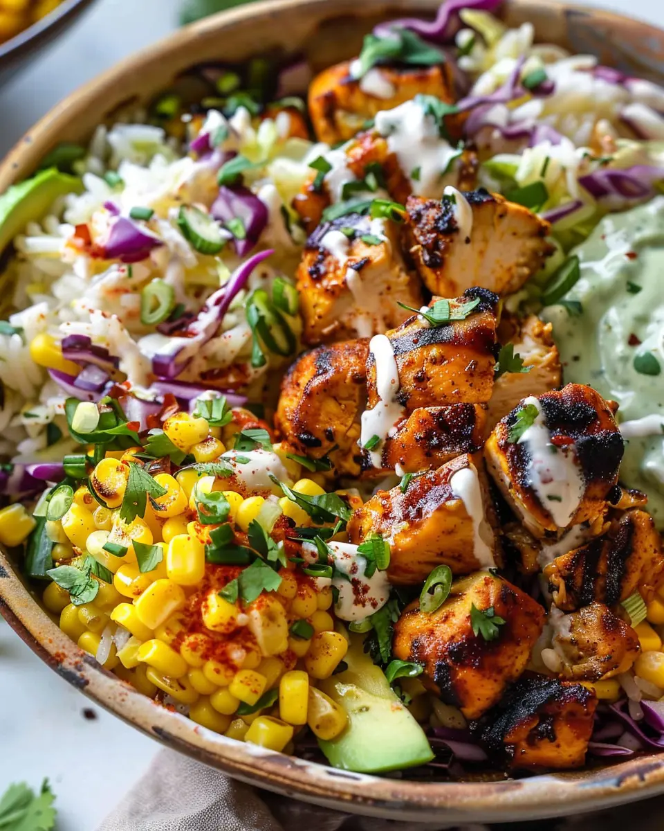 In summary, the Street Corn Chicken Bowl is a fantastic blend of flavors and textures that brings the vibrant essence of street food right into your kitchen. Not only is it a delicious meal option, but it also offers the convenience that young professionals cherish. With minimal prep time and easy ingredients, you can whip up this bowl on a busy weekday night or impress friends at your next gathering.